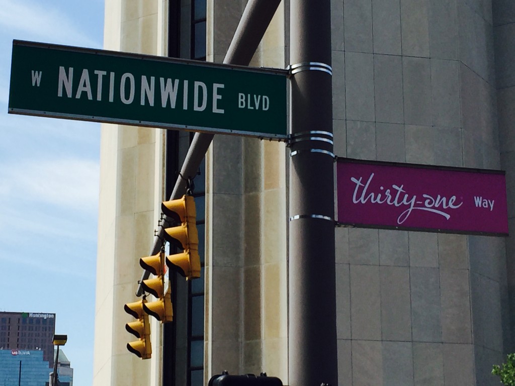 This morning, founder Cindy Monroe stood on a sunshine-clad Nationwide Boulevard with city leaders as Nationwide Boulevard became Thirty-One Way.