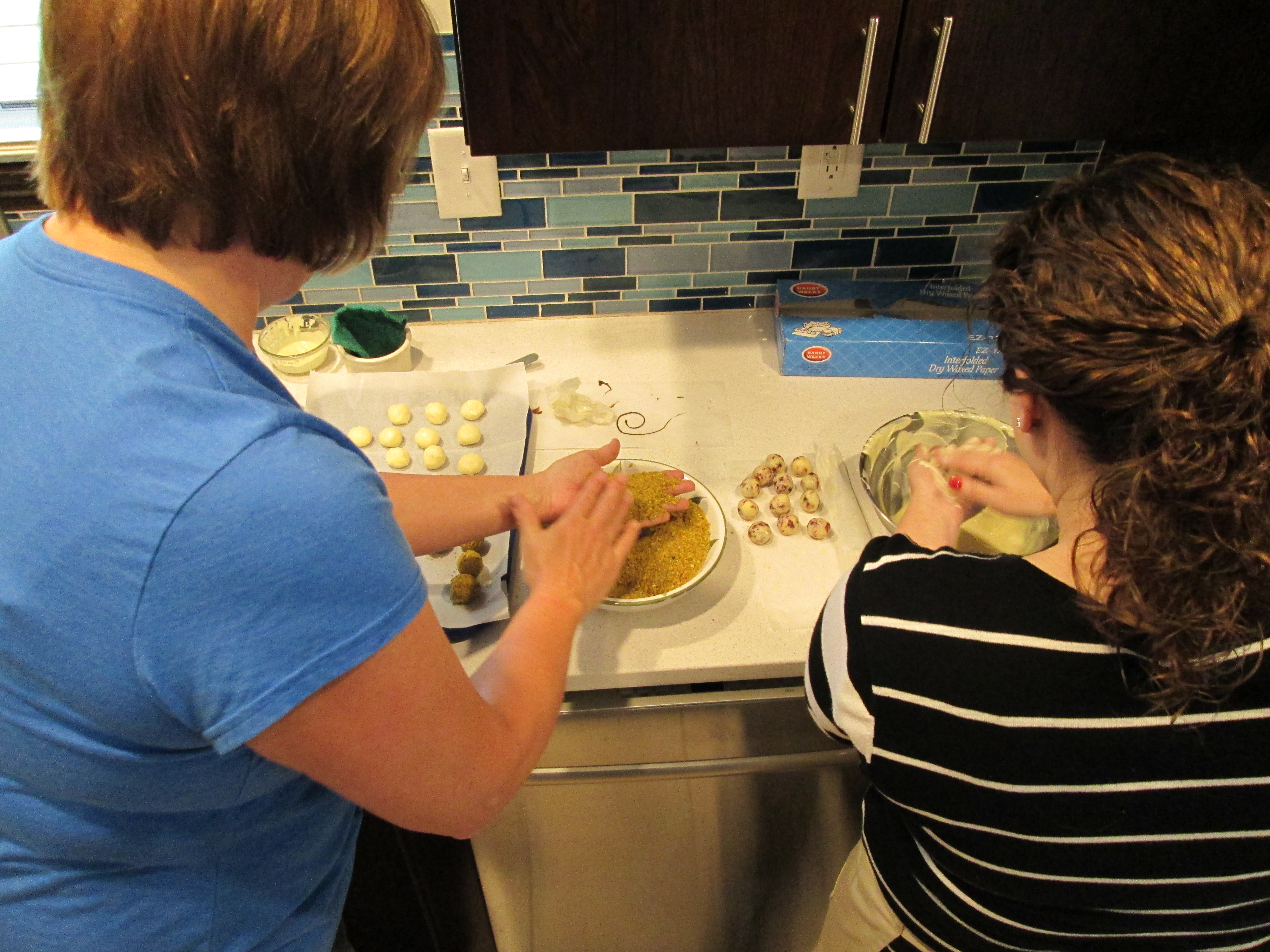 That’s Denise, talking with me as I watch their hand-rolled truffle making process in Kathy’s kitchen.  It’s in the country just a smidge north of New Albany.